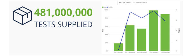 Manufacturers faced the challenge of air freight shortages during this period of disruption, as well as manufacturing restrictions. At the same time, demand for products such as LFTs and PPE was escalating rapidly. Manufacturers had to balance airport selection, routes, and schedules, as well as monitor warehouse space to ensure that supply was still met as efficiently as possible, and bottlenecks were mitigated.